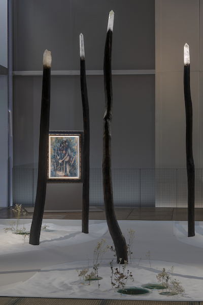 (extrait communiqué de presse) L’exposition Au-delà rassemble des artistes de différentes générations et transforme Lafayette Anticipations en un voyage évoquant des rituels ancestraux et contemporains, individuels et collectifs, païens et divins, à la recherche d’une nouvelle forme de sacré.