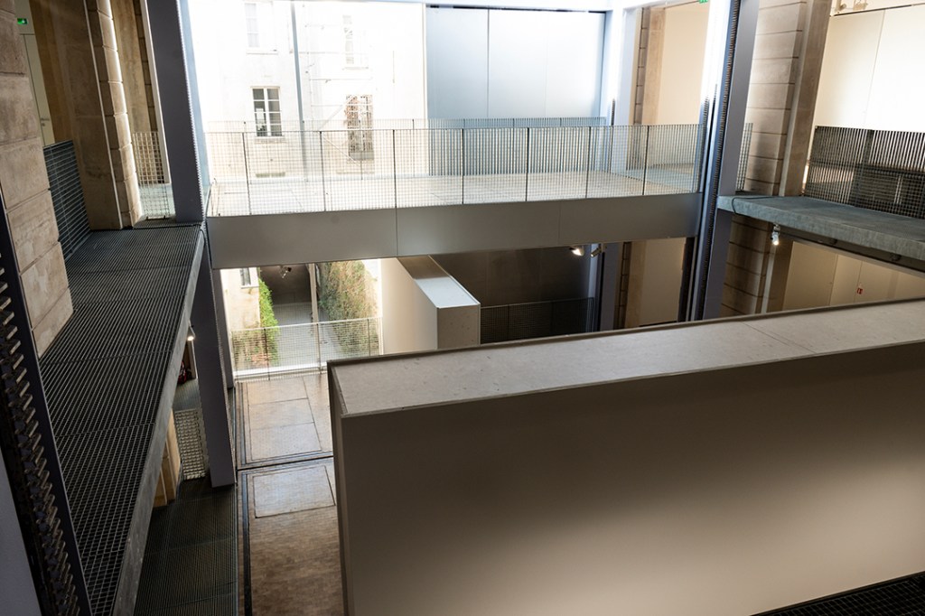 L’aménagement pour la mise en scène est conçu au service d’un ordre de découverte d’œuvres précis et des liens visuels entre des œuvres singulières, des diptyques ou des groupes plus larges. En utilisant des moyens de mise en espace et des matérialités volontairement en retrait, le visiteur suit naturellement un sens de visite.
